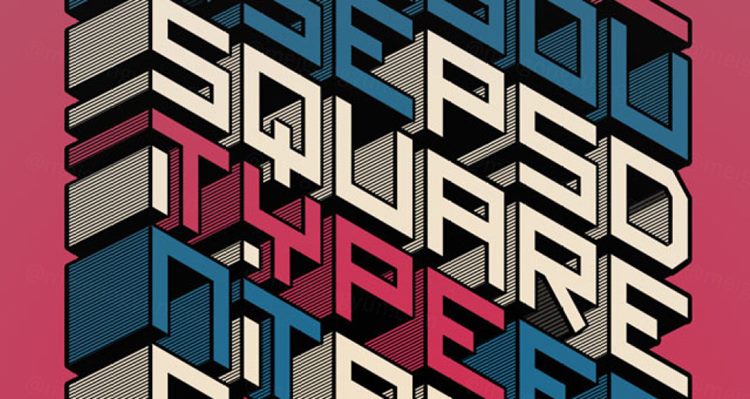 图穷联素材库 » 多彩透视效果特效文字模板Psd Square Text Ef