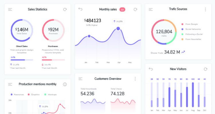 图穷联素材库 » 图表统计报告设计素材Dashboard Infographi