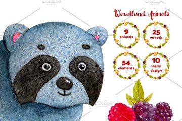 图穷联素材库 » 水彩小动物设计素材Woodland Animals Wate