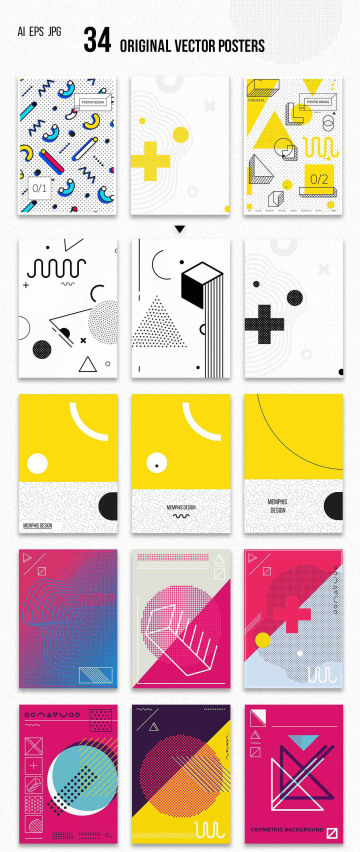 图穷联素材库 » 126 孟菲斯海报元素集 MEMPHIS Set