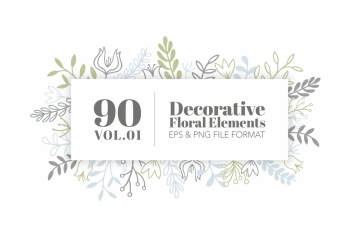图穷联素材库 » 手绘简画装饰花卉元素合集 Floral Element