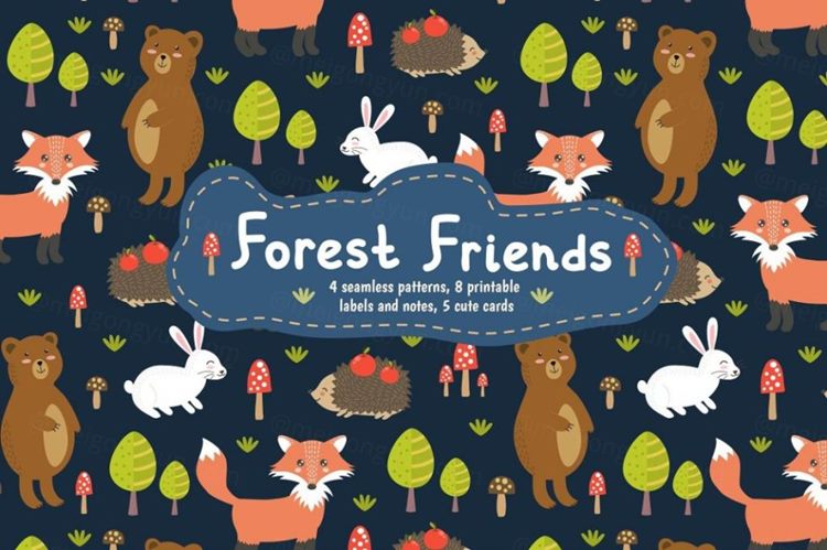 图穷联素材库 » 可爱有趣卡通森林动物矢量素材