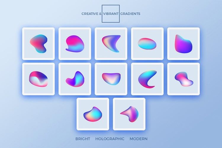 这30个生动抽象渐变和12个形状的创意彩色组合将成为现代设计的理想选择。您可以在不同的插图中使用它,例如照片叠加,创意排版,海报设计,移动应用程序或网站等。