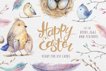 图穷联素材库 » 水彩复活节艺术元素 Happy Easter