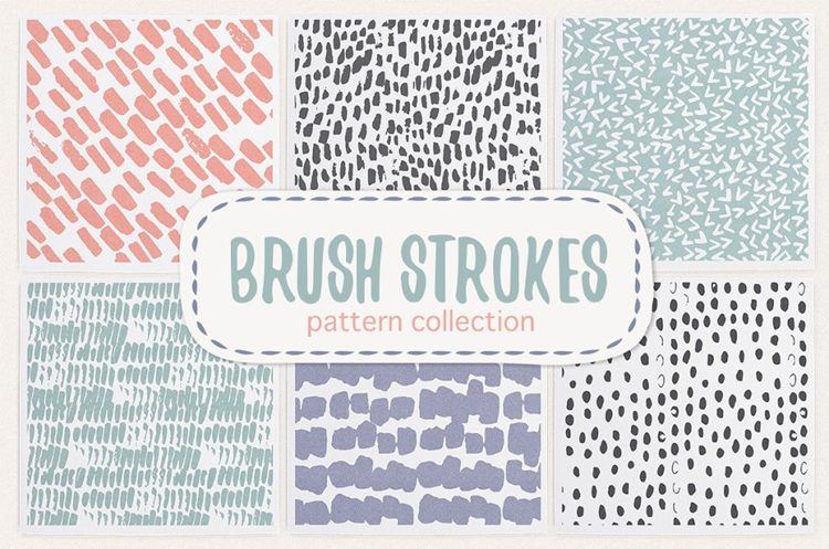 Brush strokes collection include 6 hand drawn seamless patterns. They can be used for printed paper stationery (wedding stationery, wrapping paper, packaging, tags, save the date cards, invitations), scrapbooking, home decor (pillows, towels, napkins), fashion, as well as web designs (blogs, banners, backgrounds) and other projects.