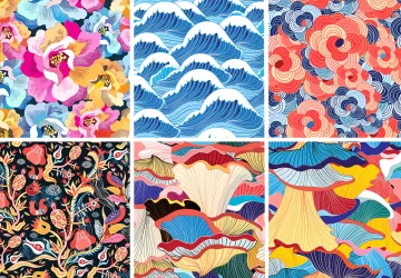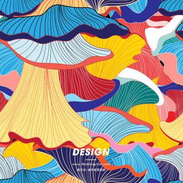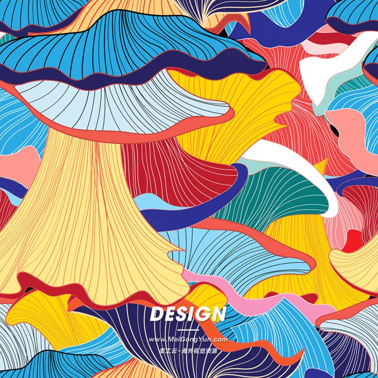 图穷联素材库 » 手绘东方中式中国风日式海浪纹理涂鸦蘑菇中式底纹矢量背景图案素