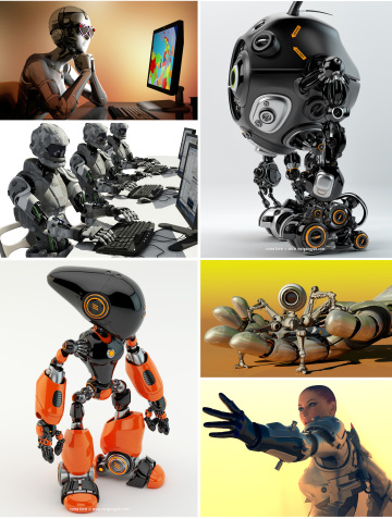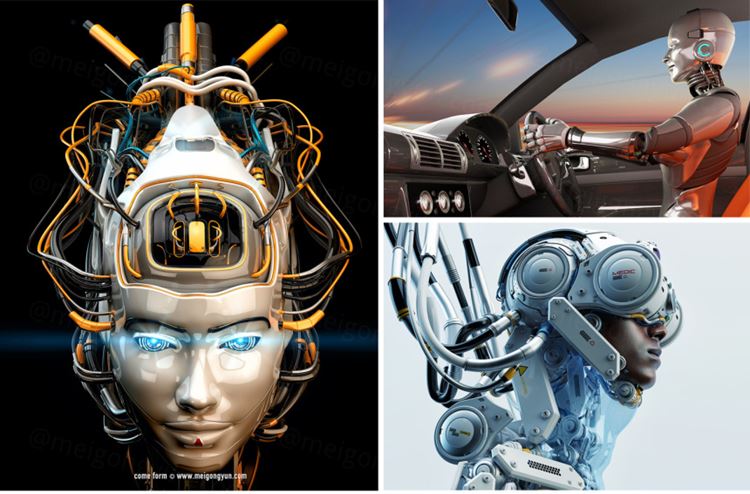 图穷联素材库 » 3D渲染人工智能机器人超科幻照片高清图片海报设计背景素材