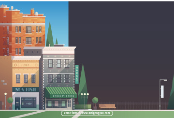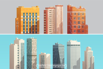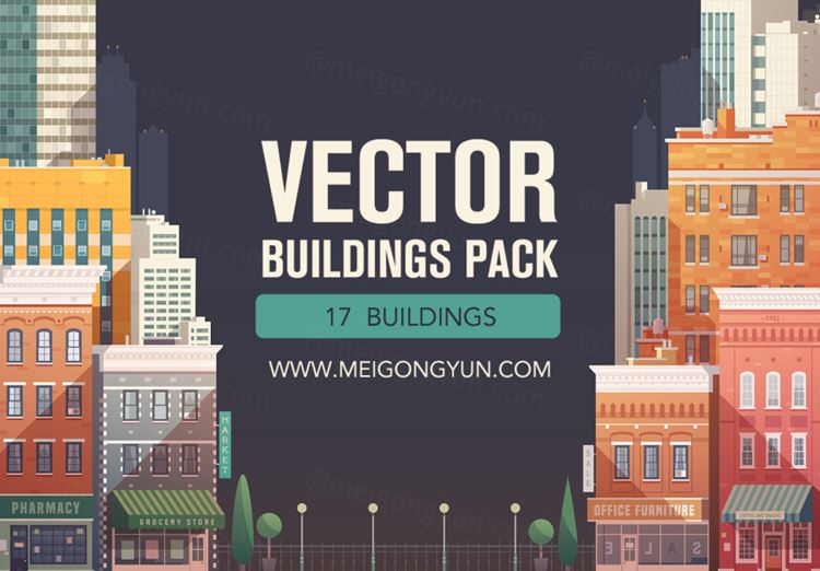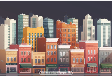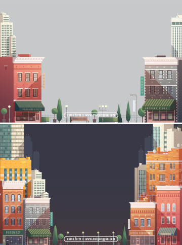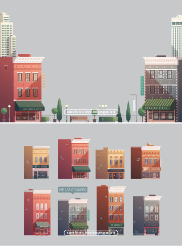 图穷联素材库 » 卡通城市街道建筑矢量场景Urban Building Sce