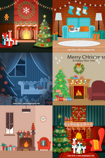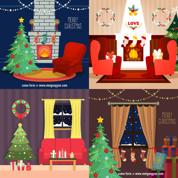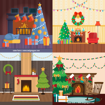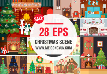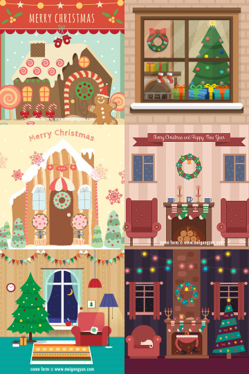图穷联素材库 » 圣诞节场景矢量插图集 Christmas scene