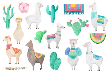 图穷联素材库 » 36款水彩可爱骆驼等沙漠风格多元素超高清插画素材 Water