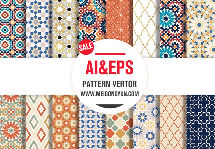 图穷联素材库 » 复古装饰摩洛哥矢量花纹图案 Pattern Vertor