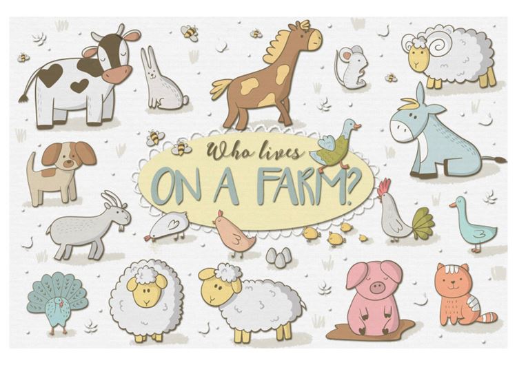 一组丰富的卡通农场动物矢量素材 Who Lives on a
