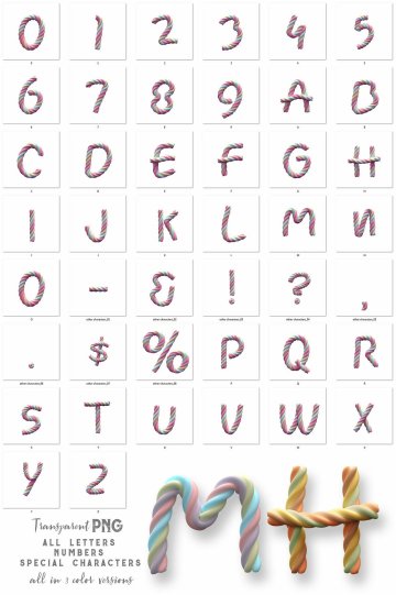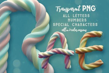 Hi-res 3D marshmallow twisted candies style letter renders (3000x3000 - but letter size is around 1500x2000). Great for your headers, posters, advertisments - any web or print projects. You\\\'ll find here also layered PSD file with 10 effets (shadows, effects...) - just replace letter in smart object and you\\\'ll see letter in all 10 effects.