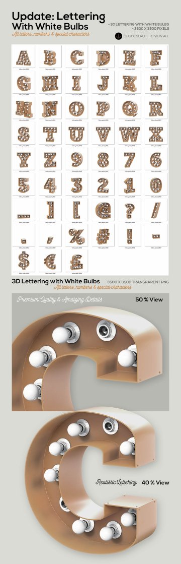 white light bulbs renders + shadows - you can place it to any of 11 material letterings