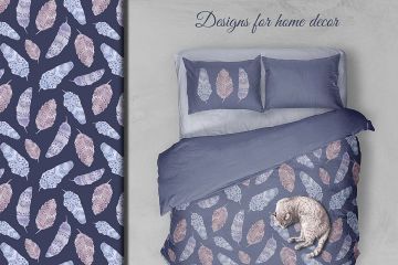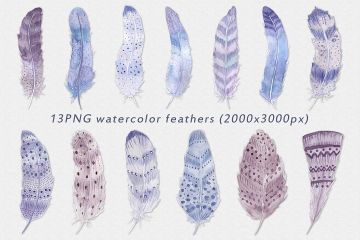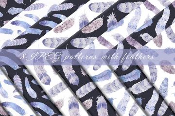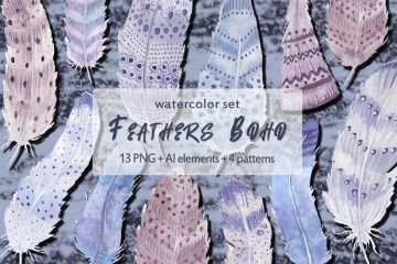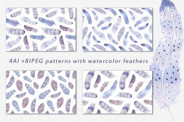 图穷联素材库 » 波希米亚风格水粉画羽毛矢量图案素材 Watercolor f