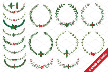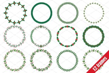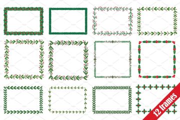 手绘矢量圣诞花纹边框素材 Christmas wreath