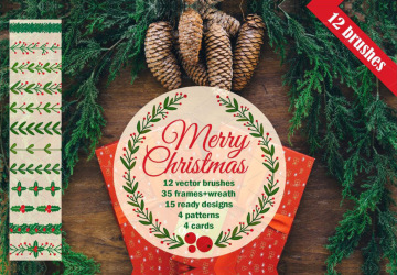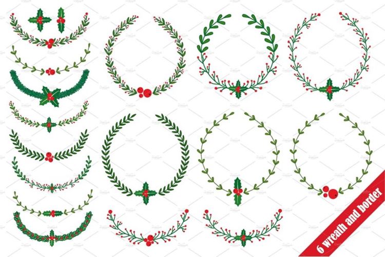 图穷联素材库 » 手绘矢量圣诞花纹边框素材 Christmas wreath