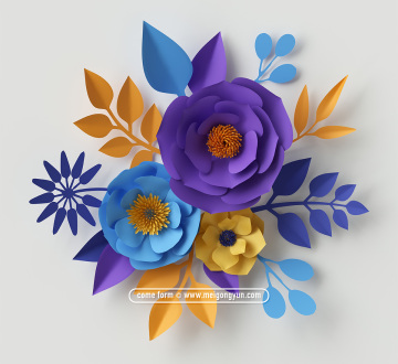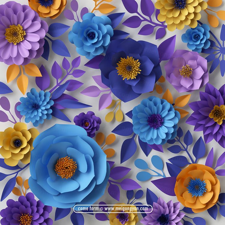 超清彩色剪纸花卉素材 Paper-Cut Flowers