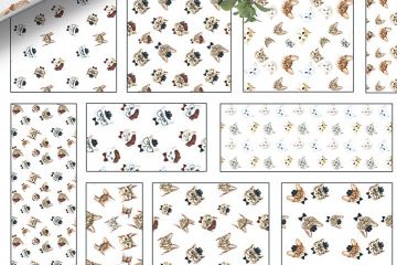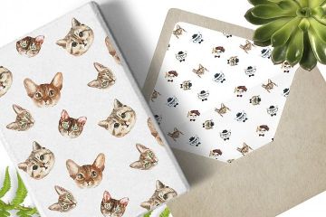 图穷联素材库 » Cat watercolor patterns 可爱水彩画猫