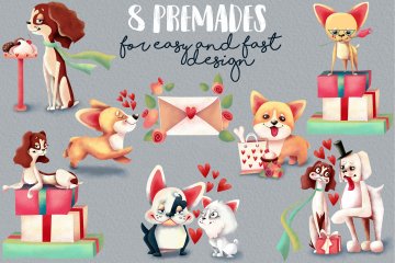 宠物小狗的情人节剪贴画素材Puppy love. Valen