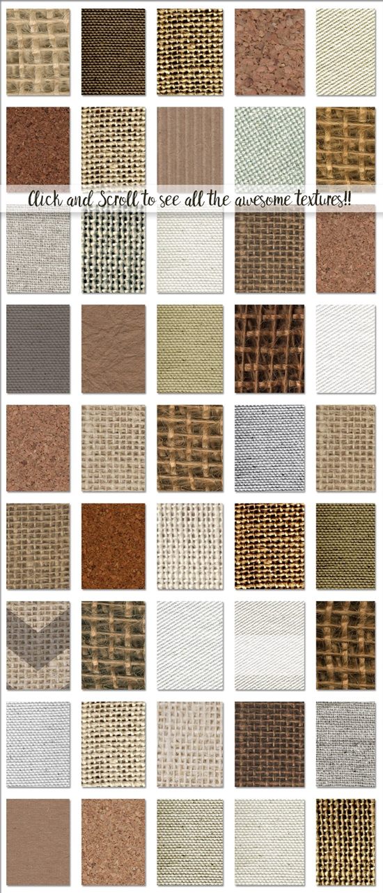 19个粗麻布纹理,3个纸板纹理,6个软木纹理和17个天然织物纹理!