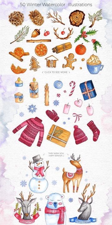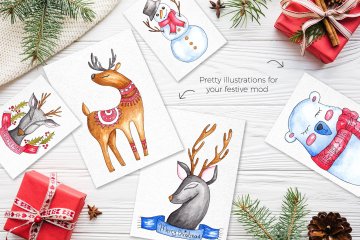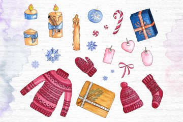 如果你想为你亲爱的人制作独特的贺卡,或者你想为你的设计添加一个舒适的外观,或者只是寻找一些喜庆的水彩插图...