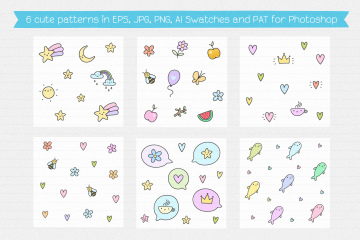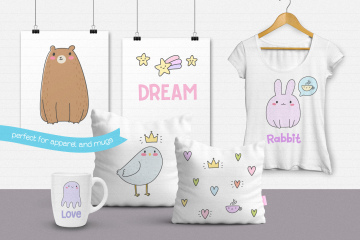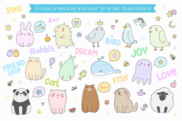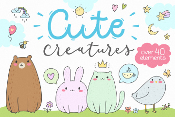 让我介绍新的可爱的生物矢量集 - 超过40个元素在所有流行的文件格式+ 6无缝矢量模式。