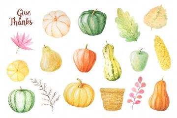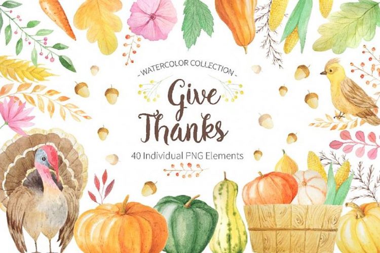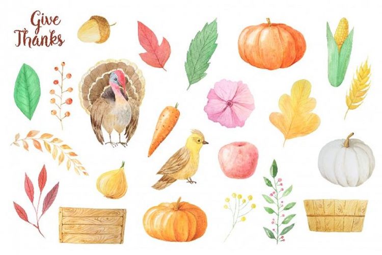 图穷联素材库 » 感恩节专题活动水彩插画元素PNG合集包 Watercolor