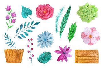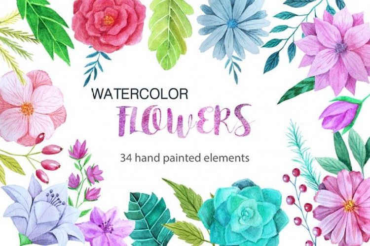 图穷联素材库 » 群花灿烂水彩花卉插画包 Watercolor Flower
