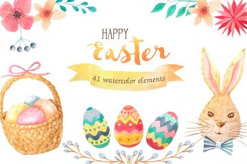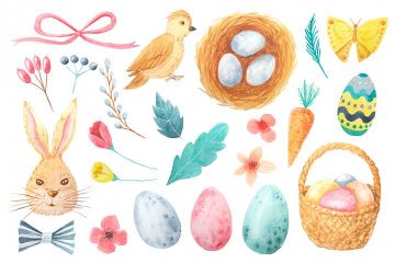 复活节水彩插画PNG元素合集包 Watercolor Eas