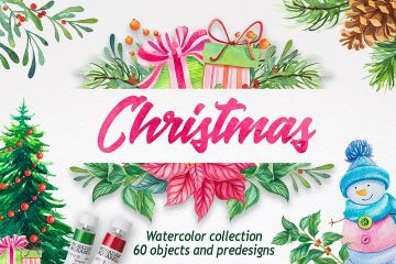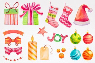 圣诞节水彩插画矢量合集包 Christmas