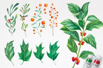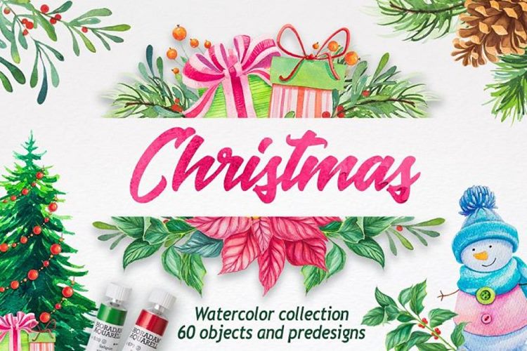 图穷联素材库 » 圣诞节水彩插画矢量合集包 Christmas