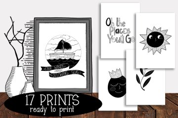 现代苗圃DIY包 - 我有这么多的乐趣。我梦想成为你的托儿所设计包,充满了叶子,桂冠,太阳和月亮。打开插画,用大胆,自信的线条创造可爱的插图是一个很好的方式来度过我的日子,我迫不及待地想看看你创造了什么酷的创作!