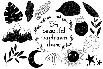 水,船,刺猬,太阳,月亮,山,树叶,桂冠,花圈和树木的54 PNG文件