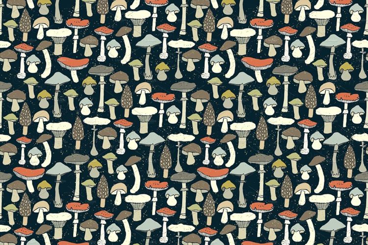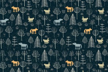Magic mushrooms, trees and forest animals made in cartoon style. These textures can be used for textile and clothing prints, wrapping paper, fabric, wallpapers, backgrounds in web-design.