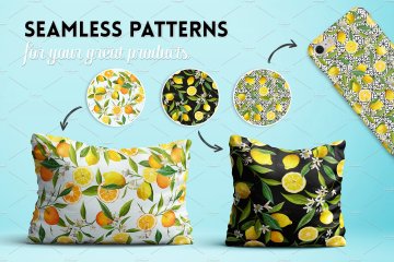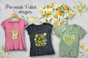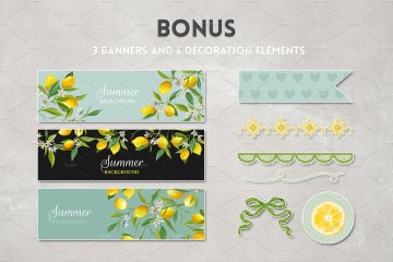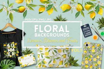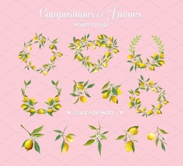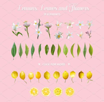 图穷联素材库 » 手绘水彩柠檬花卉矢量元素Watercolor Floral