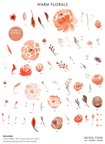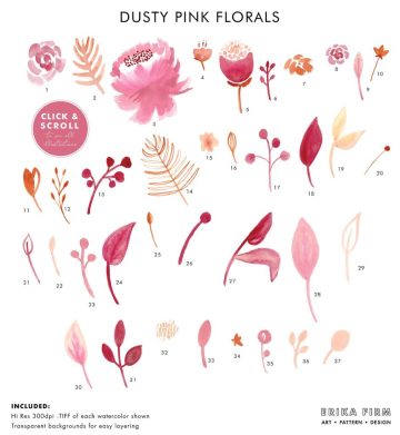 手绘水彩花卉矢量素材Warm Dusty Watercolo