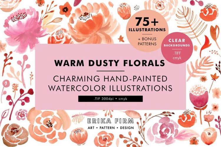 图穷联素材库 » 手绘水彩花卉矢量素材Warm Dusty Watercolo