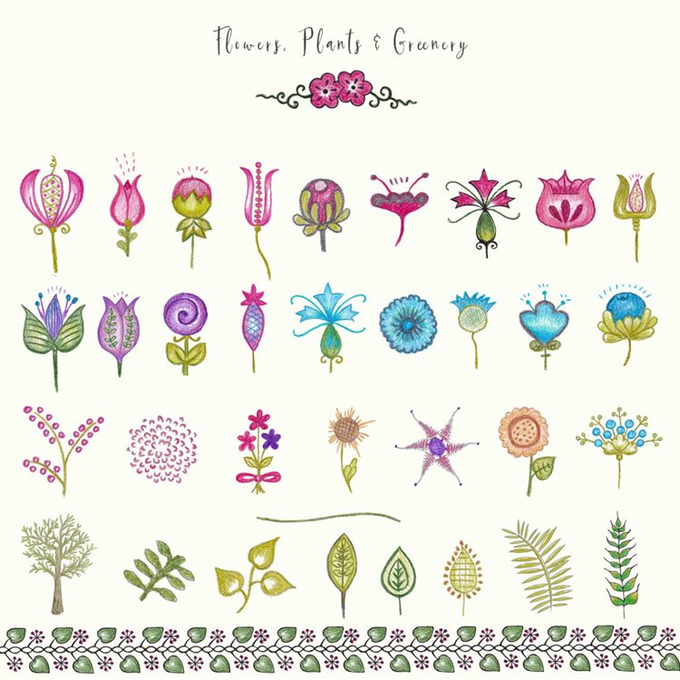 可爱漂亮的手绘卡通图案合辑 Hand Sketched Fl
