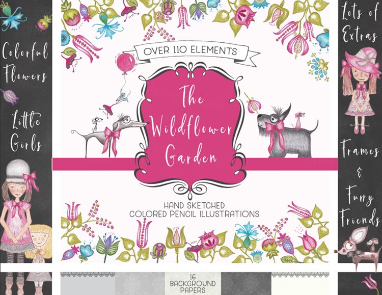 图穷联素材库 » 可爱漂亮的手绘卡通图案合辑 Hand Sketched Fl