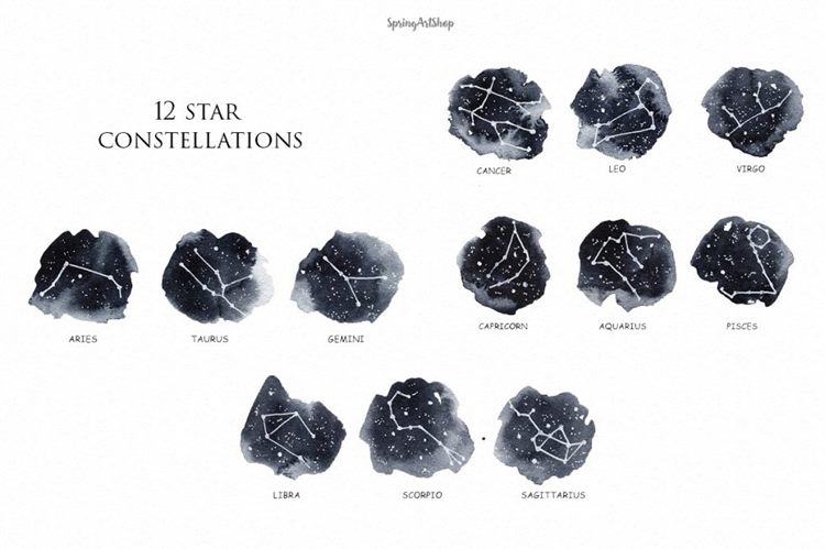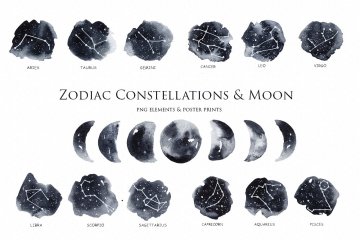 图穷联素材库 » 十二生肖星座&月亮剪贴画 Zodiac Constellat