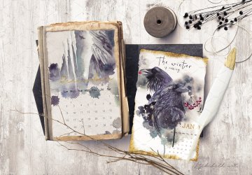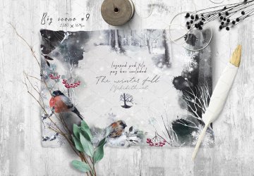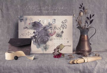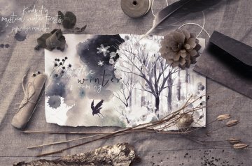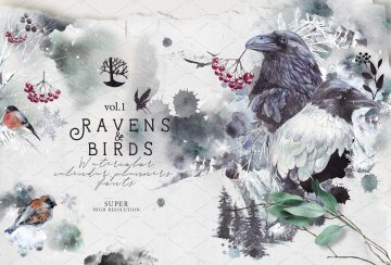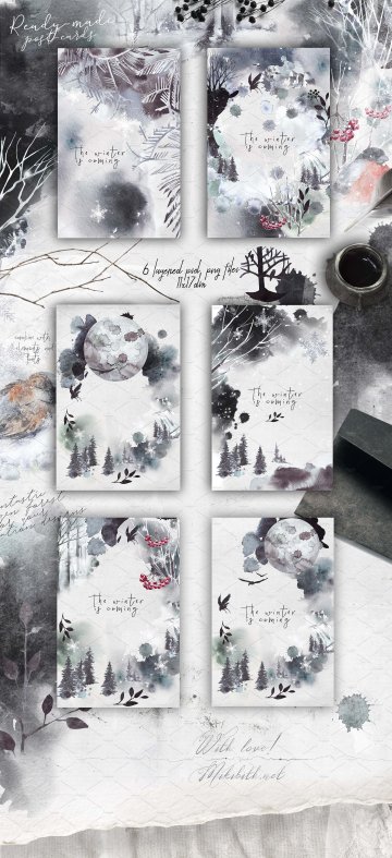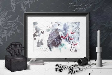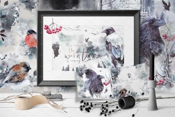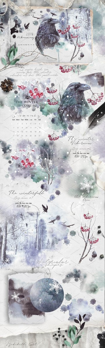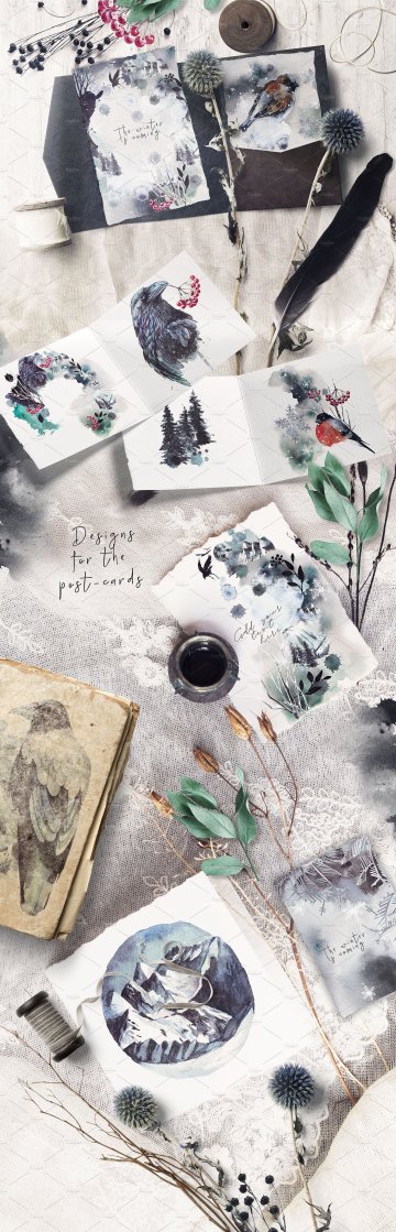 图穷联素材库 » 冬季中国风鸟类水墨水彩画合集包素材 The Winter f