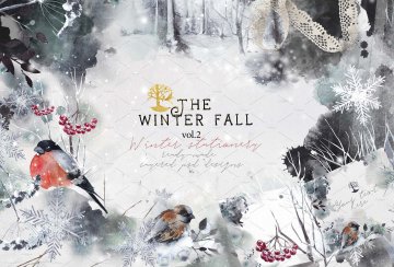 冬季中国风鸟类水墨水彩画合集包素材 The Winter f