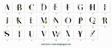 图穷联素材库 » 手绘森系绿色树枝树叶花环英文字母免扣元素Hand-paint