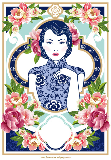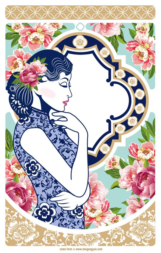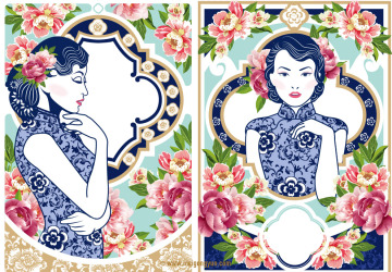图穷联素材库 » 复古风传统东方女士矢量元素Vectorial element