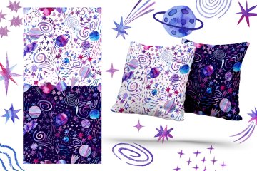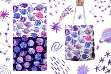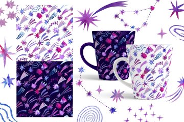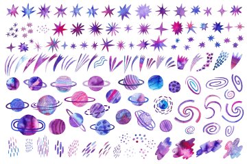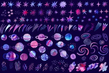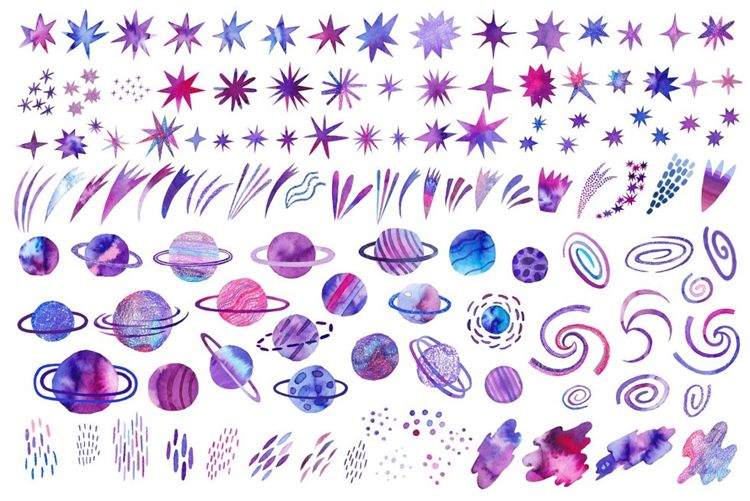 图穷联素材库 » 手绘紫罗兰色水彩宇宙空间银河系插画元素 Watercolor