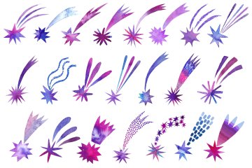 带有透明背景色的124个PNG文件(闪烁星星,行星,星云,星系,planetoid,小径,流星,陨石,小行星,纹理)