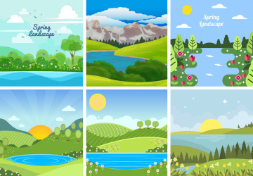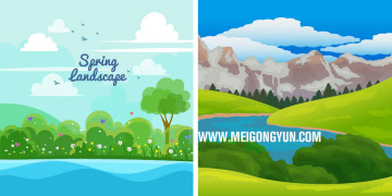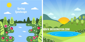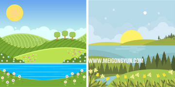 图穷联素材库 » 矢量春季春天湖泊田园插画元素Field flower vec