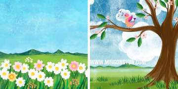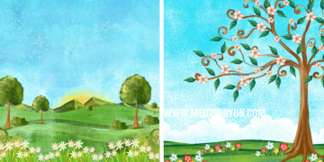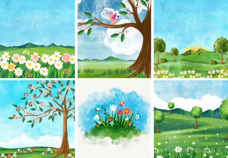 图穷联素材库 » 矢量春季春天湖泊田园水彩插画元素Field flower v