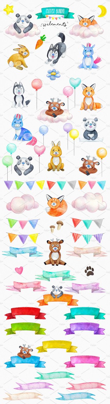 这最可爱的手绘收藏是关于可爱的动物,童年和美丽的东西!这就是你需要创造自己可爱的故事!套装包括动物,如鹿,哈士奇,独角兽,狐狸,熊猫和兔子。75个高质量的独立PNG文件!我希望你会喜欢它!这个系列包括: